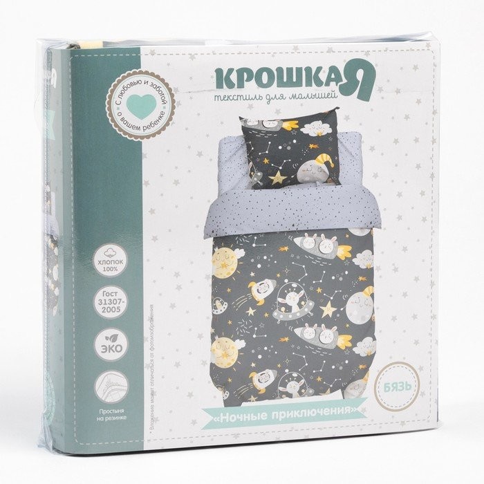 Постельное бельё детское Крошка Я «Ночные приключения», 112×147 см, 60×120+20 см, 40×60 см