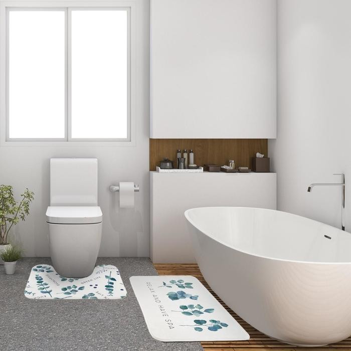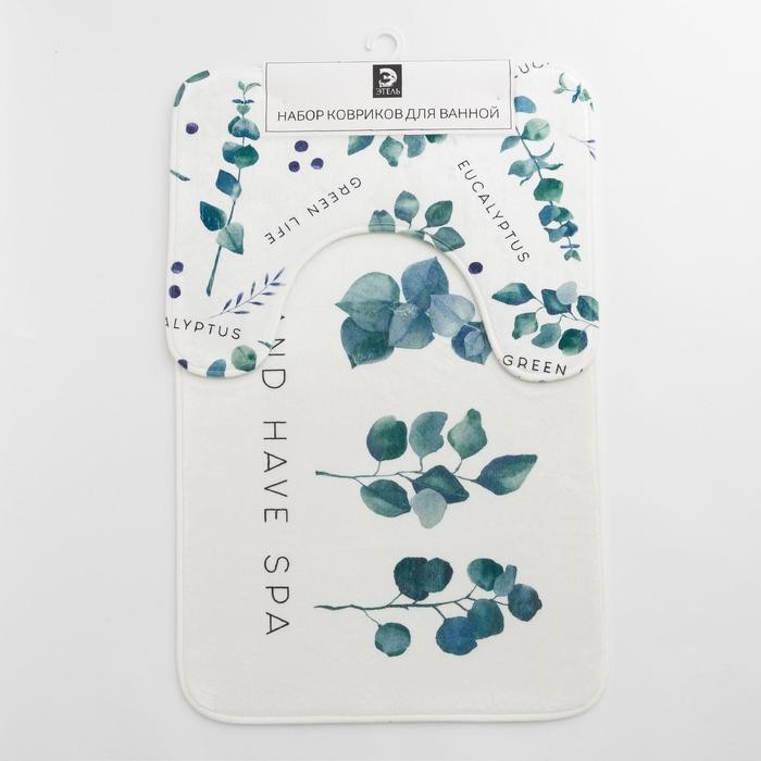 Набор ковриков для ванной Этель «Эвкалипт» 2 шт, 80×50 см, 50×40 см, велюр