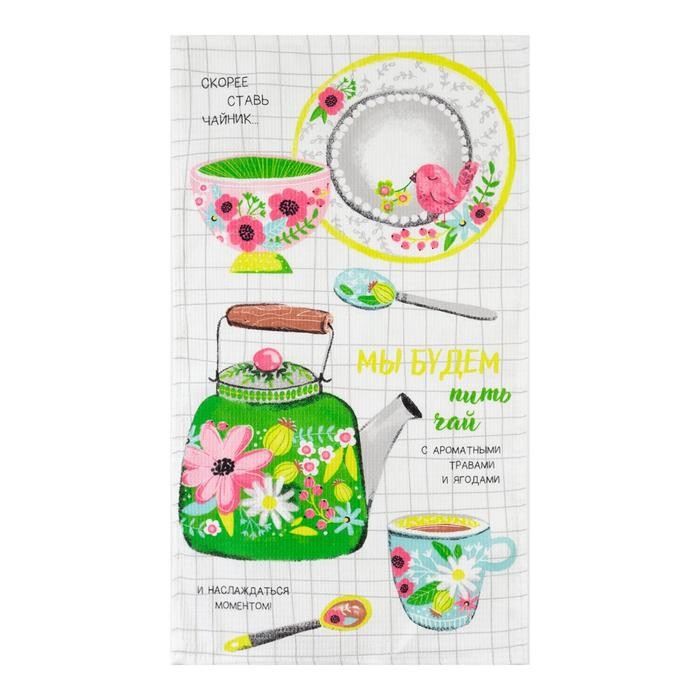 Полотенце Доляна «Чаепитие» 35×60 см, 100% хл, вафля 160 г/м2