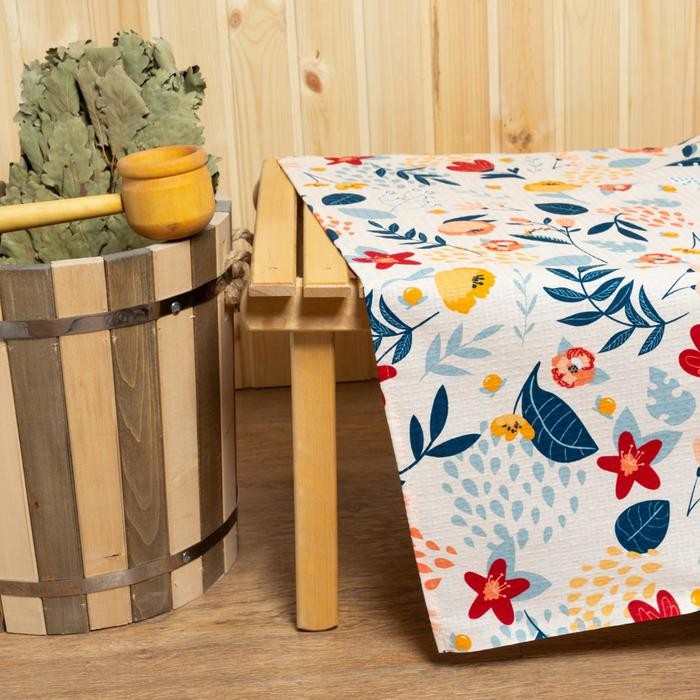 Простыня для бани «Цветочное поле» 150×180±5 см, 100% хлопок, вафельное полотно, 160 гр/м2