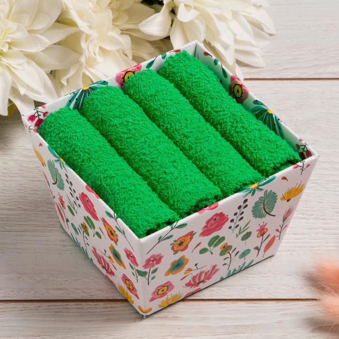 Набор махровых салфеток «Цветочный сад» 30×30 см -4 шт, 100% хл, 340гр/м2