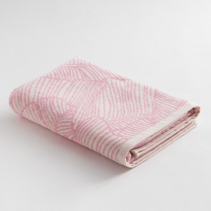 Полотенце махровое Этель Foglie розовый, 70×130 см, 100% хл, велюр, 420 гр/м2