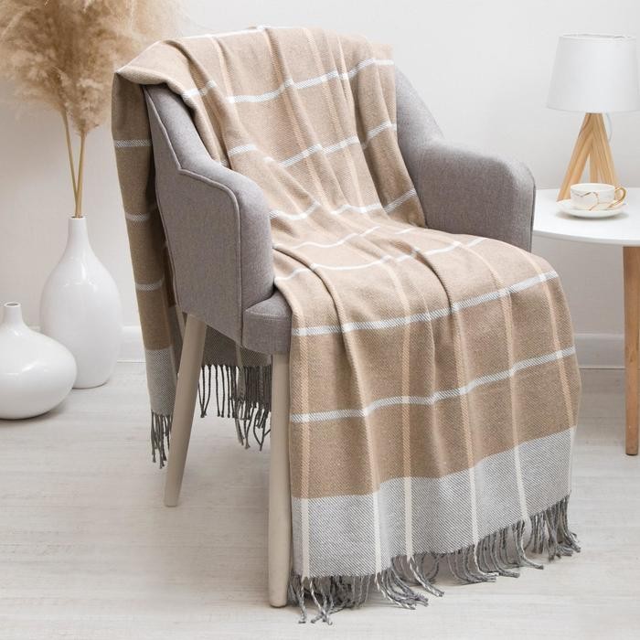 Плед Валенсия 140×200 см, HARRY бел/дым/пес, хл50%, п/э30%, пан 20% 5 524 632