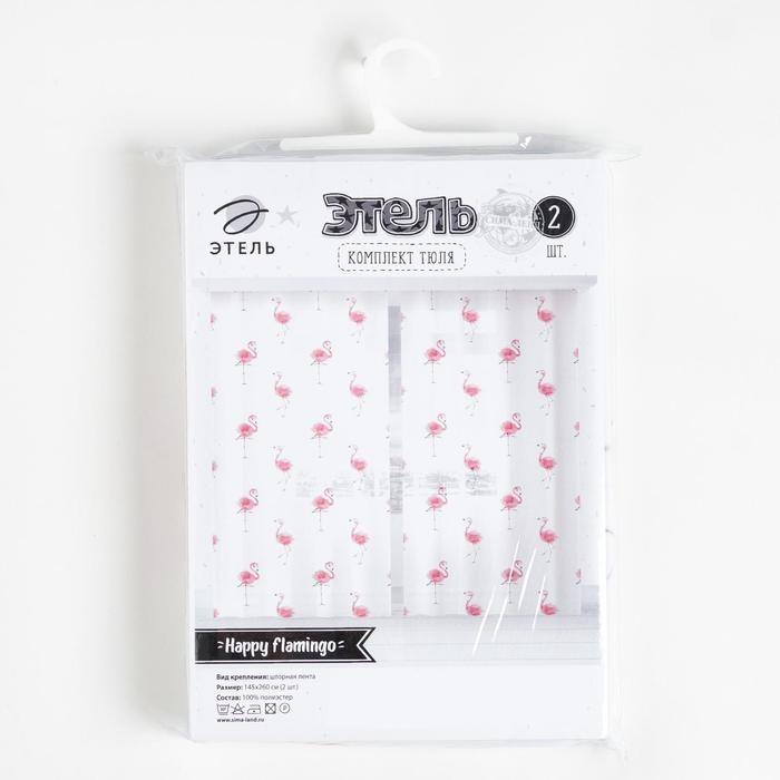Комплект тюлей «Этель» Happy flamingo, 145*260 см-2 шт, вуаль