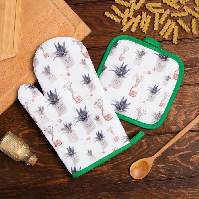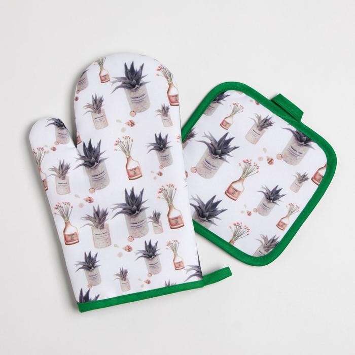 Кухонный набор Доляна «Цветы», прихватка 17*17 см, рукавица 26*16 см,100% п/э