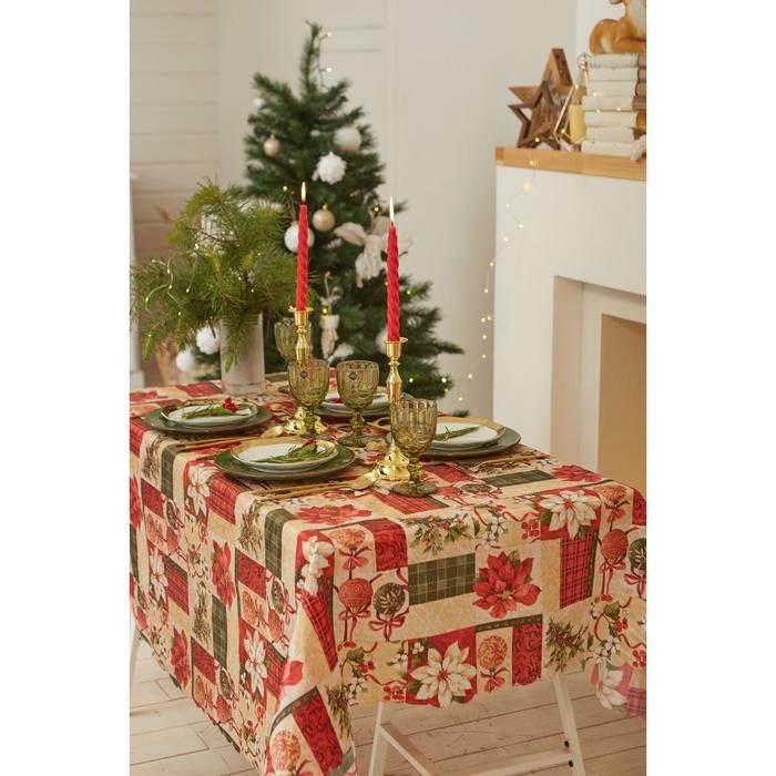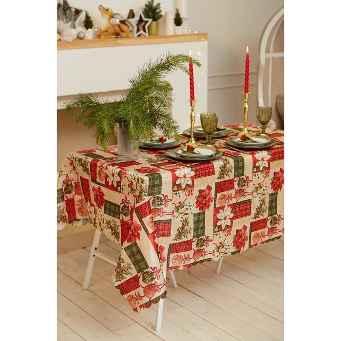 Скатерть Доляна «Новый год: Новогодние игрушки» 145*220 +/- 2 см, 100% п/э