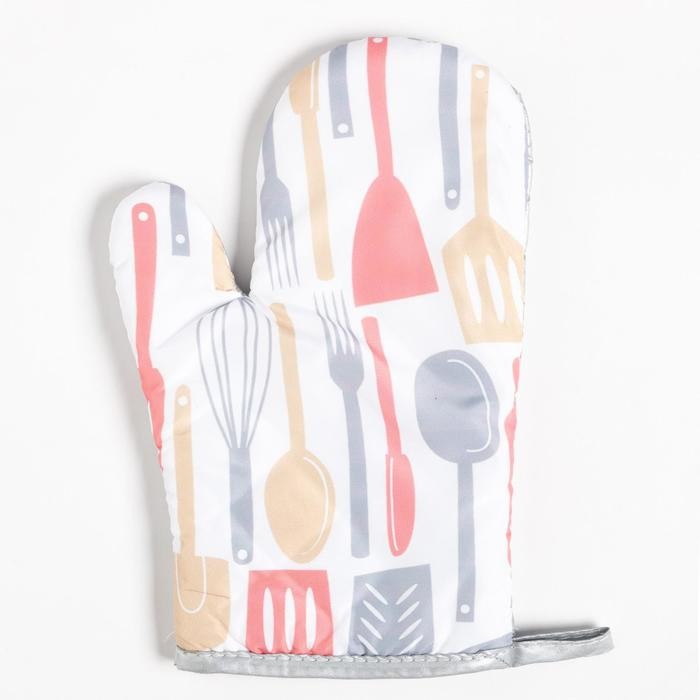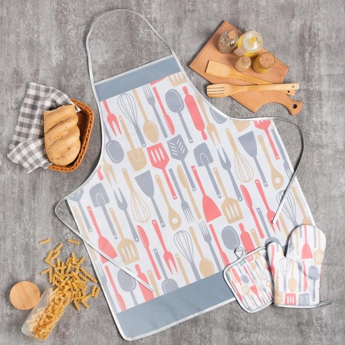 Кухонный набор Доляна «Кухня», прихватка 17*17 см, рукавица 26*16 см, фартук 70*80 см 100% п/э