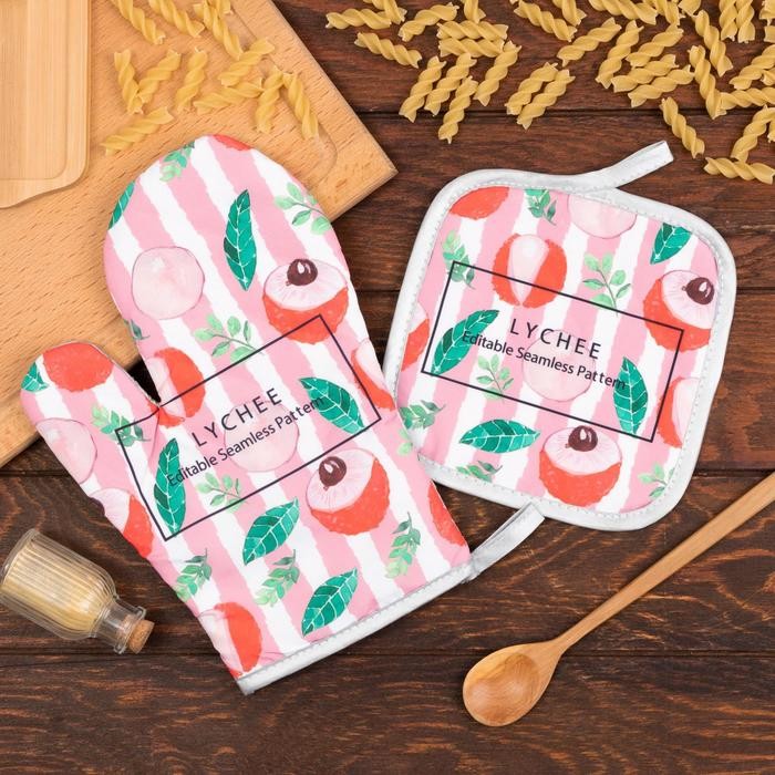 Кухонный набор Доляна «Личи» прихватка 17*17 см, варежка-прихватка 26*16 см, 100% п/э
