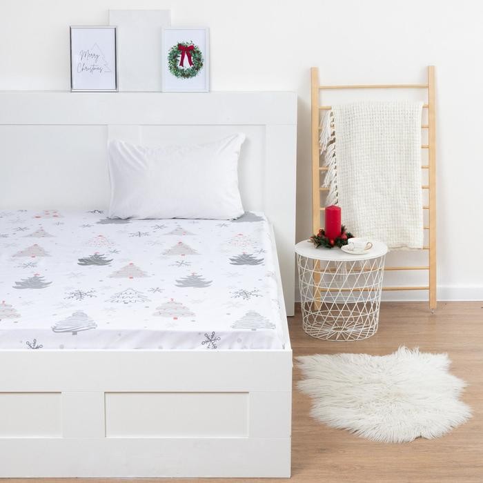 Простыня на резинке Этель 180*200*25 см «Рождественская ель», 100% хлопок, бязь, 125 гр/м2