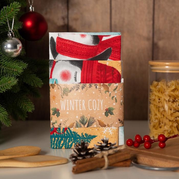 Набор кухонных полотенец Доляна «Снежного настроения » 35х60см-2шт, 100% хл