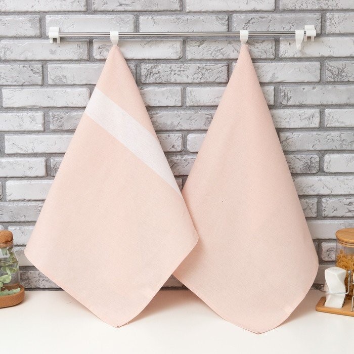 Набор полотенец «Этель» 2 шт, цв. пудровый, 100% хлопок, 163 г/м2