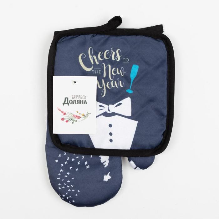 Кухонный новогодний набор Доляна Cheers, прихватка 17*17 см, варежка 25*17 см,100% п/э