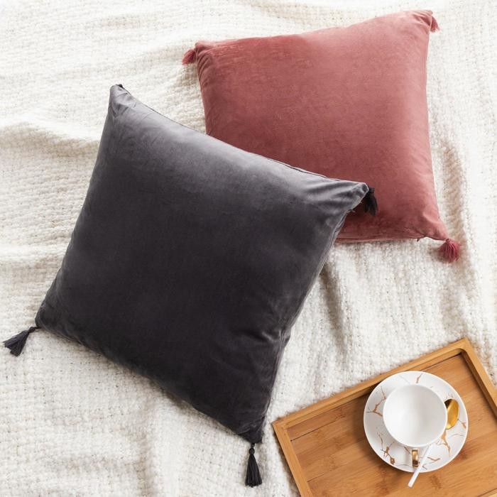 Наволочка на подушку с кисточками Этель цвет пыльная роза, 45×45 см, 100% п/э, велюр