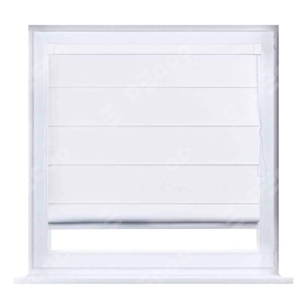 Римская штора кассетного типа, производителя «Cortin», устанавливается только на пластиковые окна и прилегает к стеклопакету, пошита из ткани вельвет белый, артикул 10810.