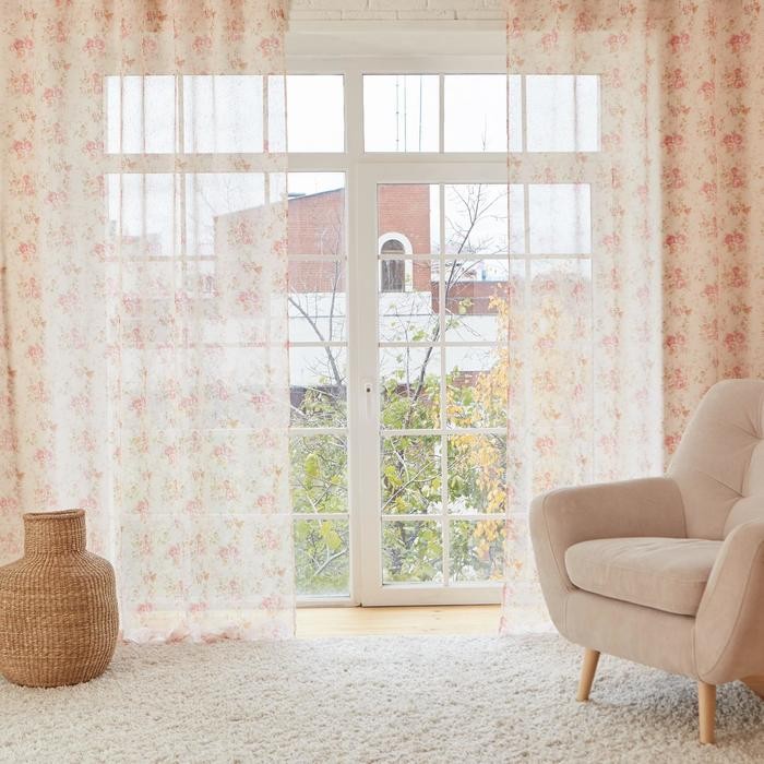 Штора тюлевая «Этель» 260*250 см Нежные цветы б/утяжелителя,100% п/э