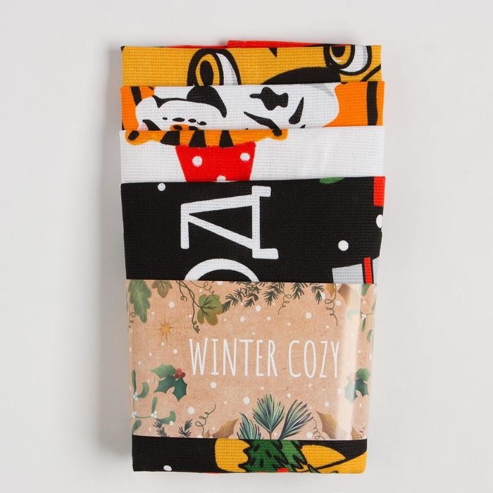 Набор кухонных полотенец Доляна «Любимый праздник» 35×60 см-4шт., 100% хлопок, 160 г/м2