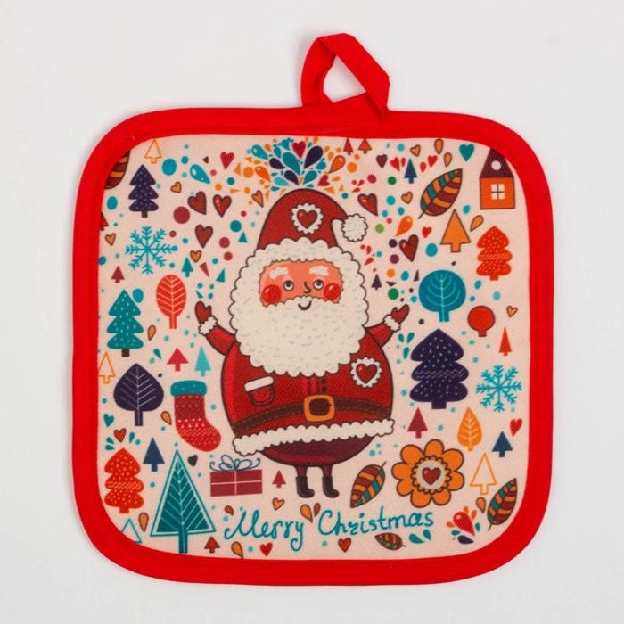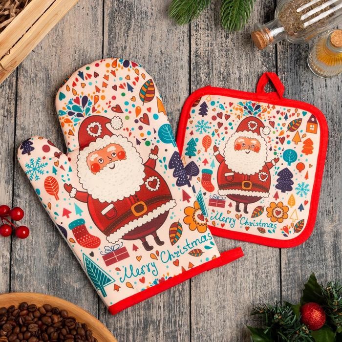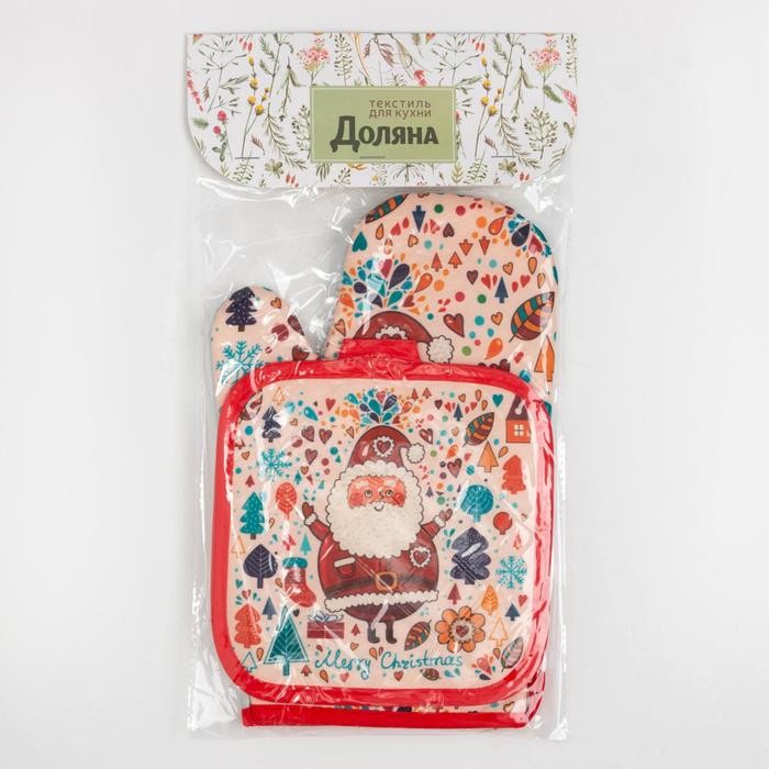 Кухонный новогодний набор Доляна «Санта», прихватка 17*17 см, варежка 26*16 см,100% п/э