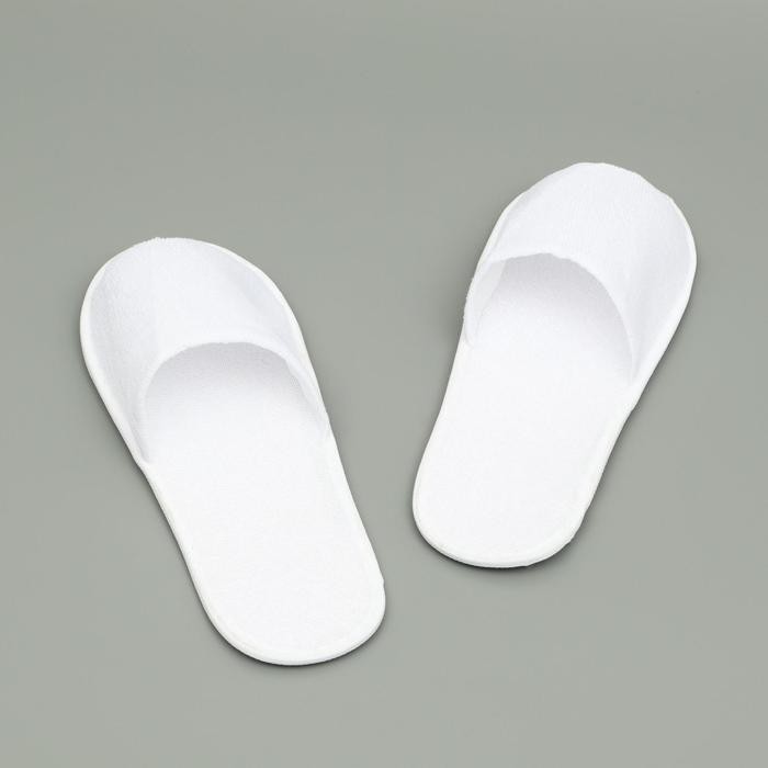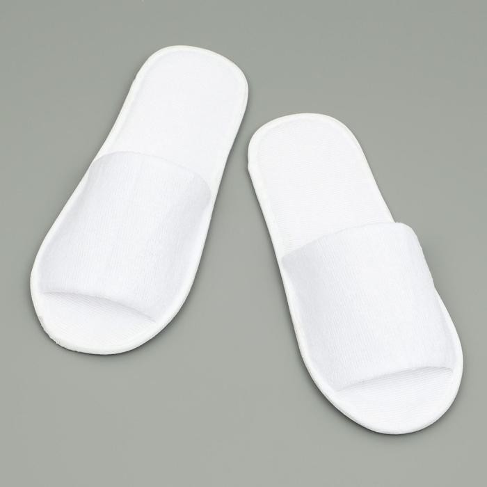 Одноразовые тапочки, Махровые-Медиум-лайт, синтетика, белые, открытый мыс, 42 р.