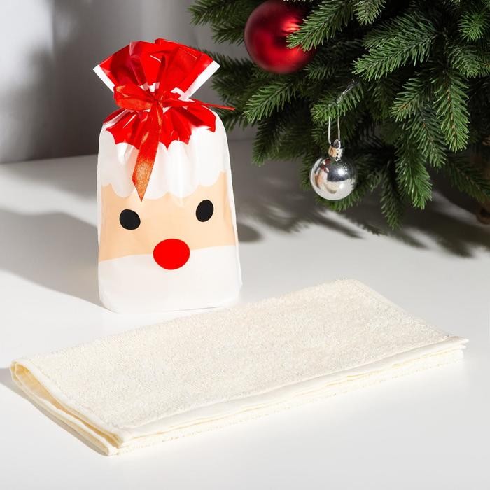 Полотенце подарочное Экономь и Я «Дедушка Мороз» 30×60 см, цвет молочный, 100% хл, 320 г/м2