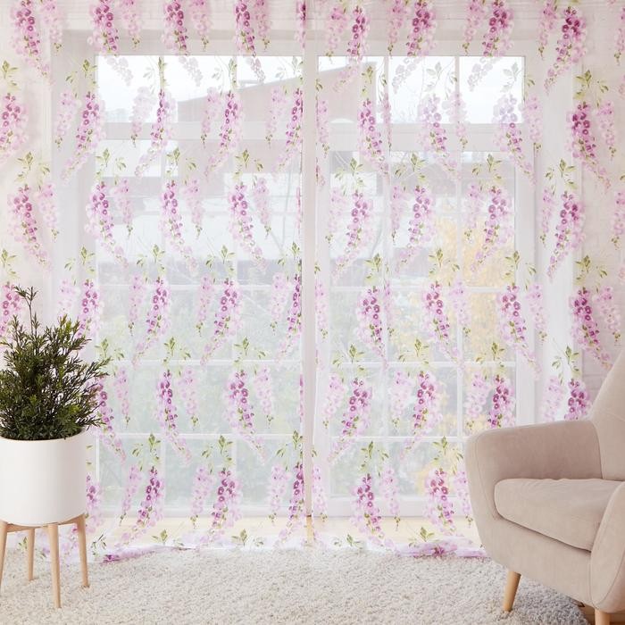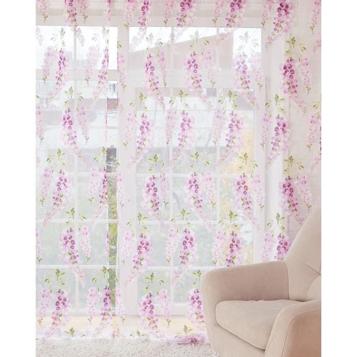 Тюль «Этель"Виноградная лоза (лиловый) б/ утяжелителя, ширина 260 см, высота 250 см