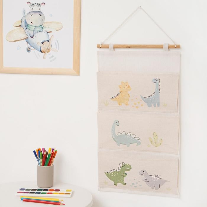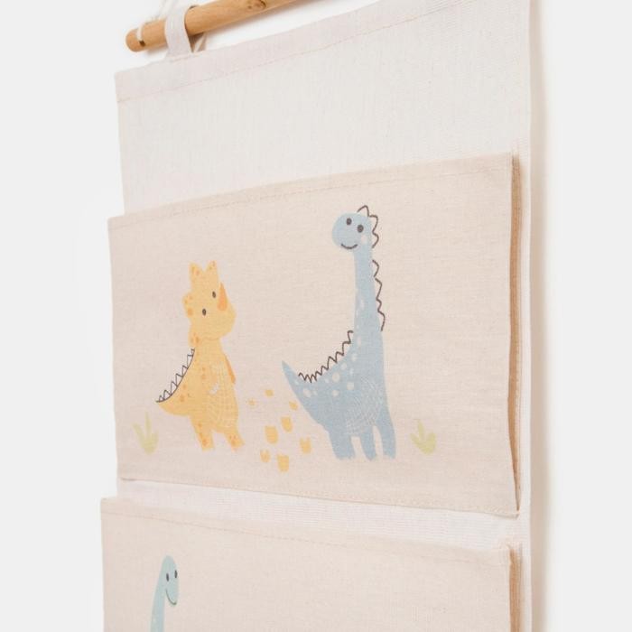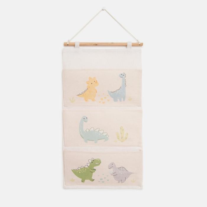 Кармашек текстильный Этель «Динозаврики», 3 отделения, 34*63,5 см