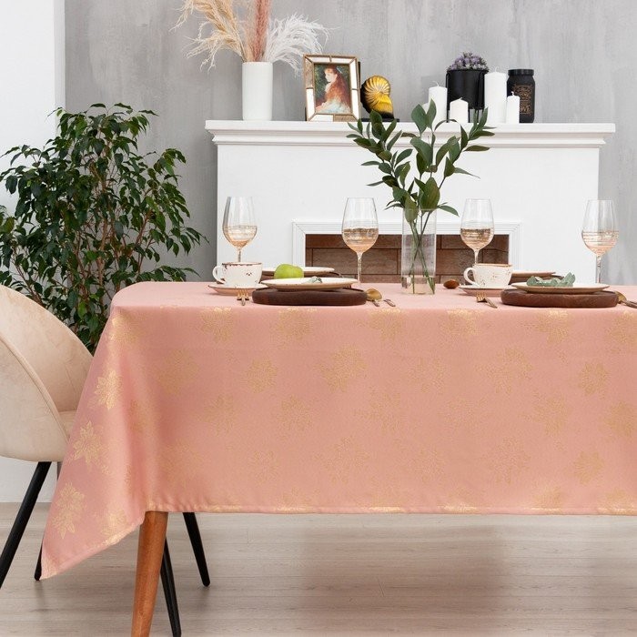 Скатерть Этель «Пуансеттия» цв.розовый, 142*180 +/-3 см, 115 ±10 гр,100% п/э