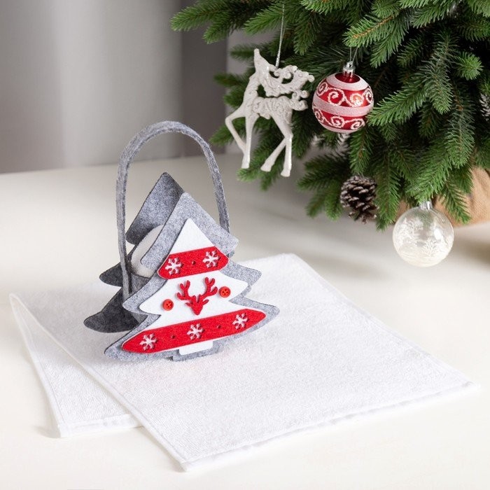 Полотенце в корзинке Экономь и Я «Елочка» 30*60 см, цв. белый, 100%хл, 320 г/м2