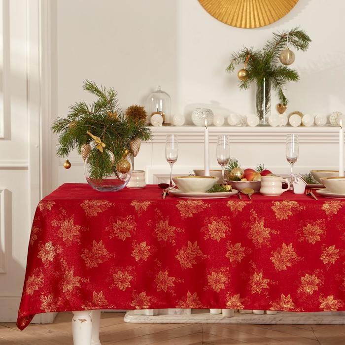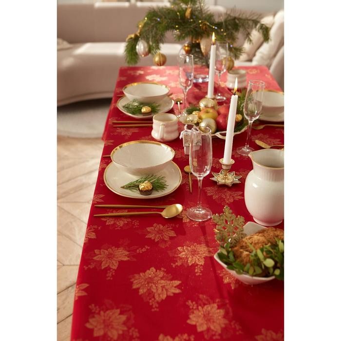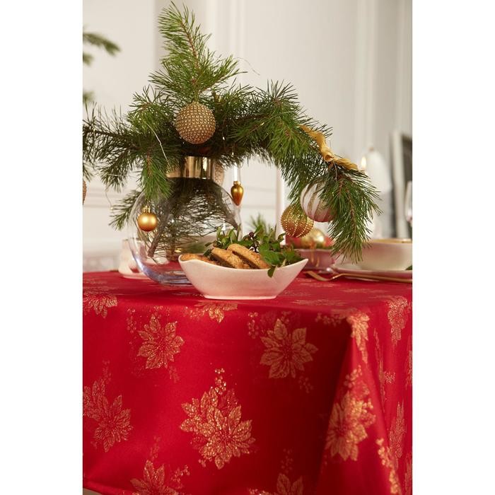 Скатерть Этель «Пуансеттия» цв.красный, 142*110 +/-3 см, 115 ±10 гр,100% п/э