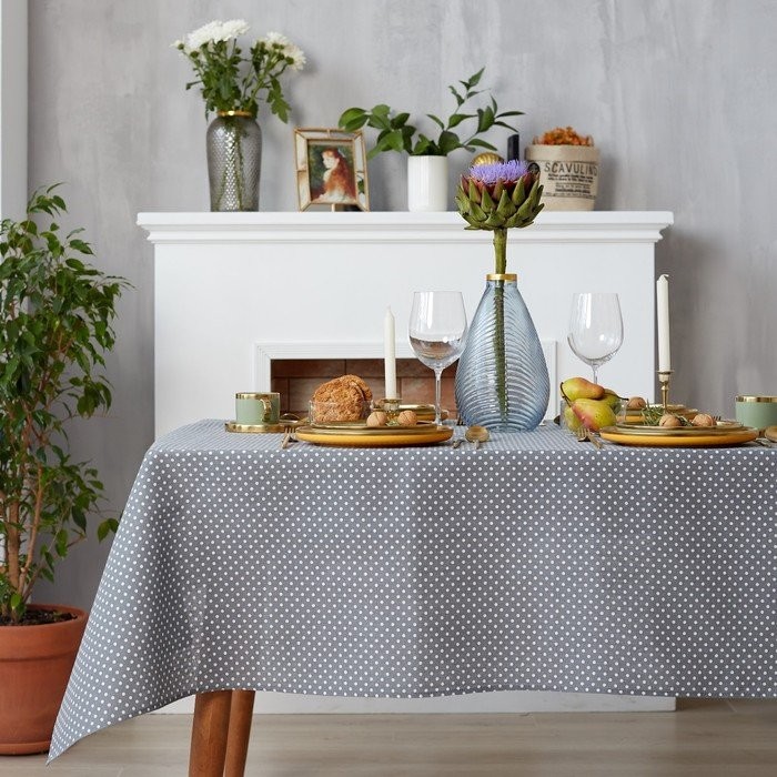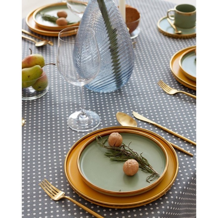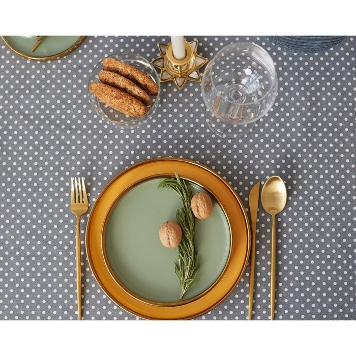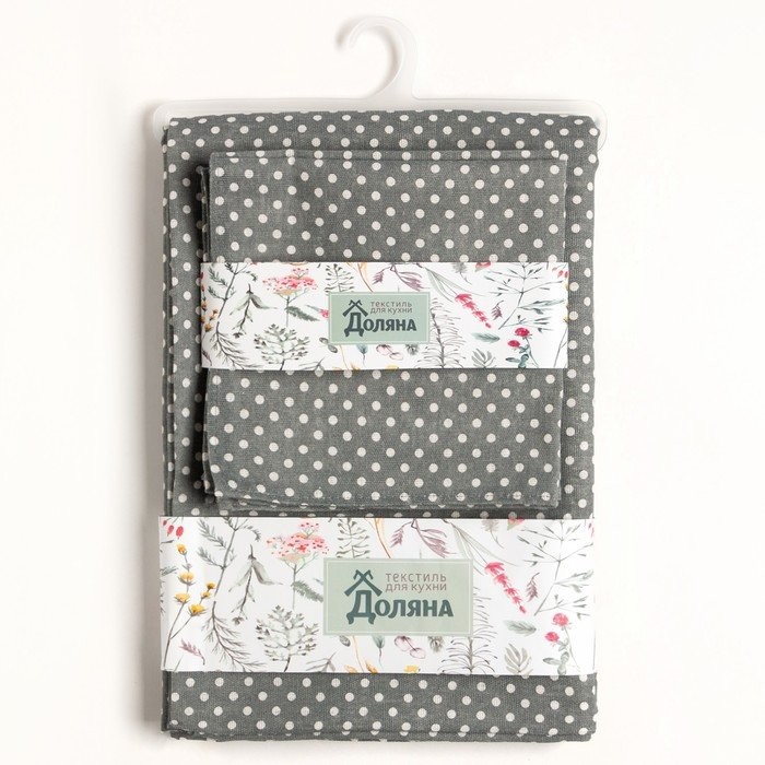 Набор Доляна скатерть 145х200см/салфетки 40х40см 4шт, Горох сер, 100%пэ, рогожка 200 гр/м