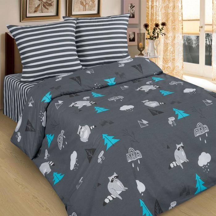 Постельное бельё 1,5 сп «Pastel Еноты», размер 147×217 см, 150×220 см, 70×70 см, 2 шт, поплин, 100% хлопок