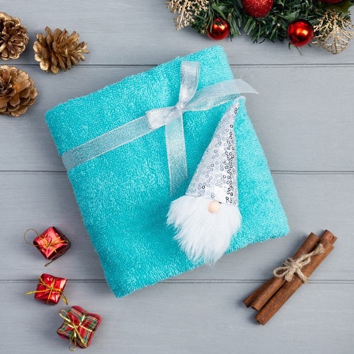 Подарочное полотенце с игрушкой Этель «Гномик» 50*90 см, цв.бирюзовый, 100% хл, 320г/м2