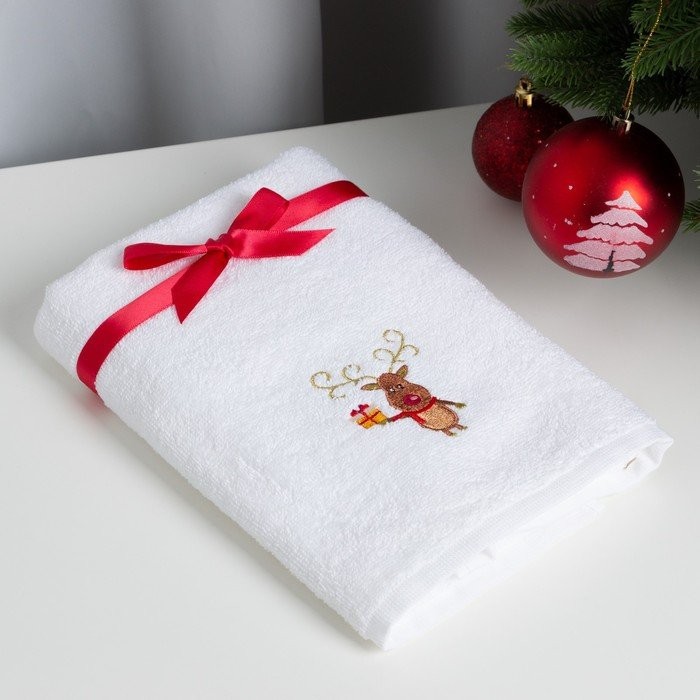 Полотенце подарочное Этель «Олень с подарком» 50*90 см, 100% хл, 340 гр/м2