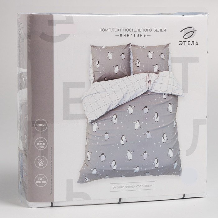 Постельное белье Этель 2 сп «Пингвины» 175*215 см, 200*220 см, 70*70 см — 2 шт
