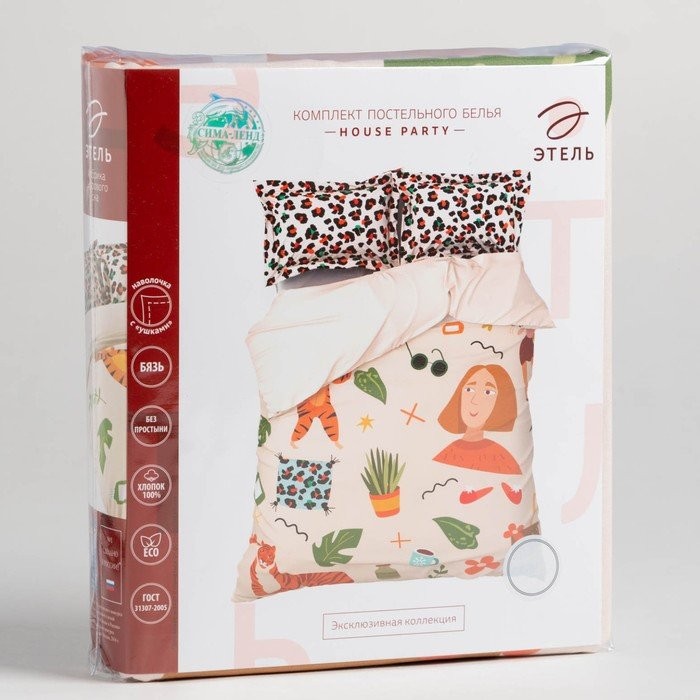Комплект: пододеяльник и 2 наволочки House party 143*215 см, 50*70 см — 2 шт, 100% хлопок