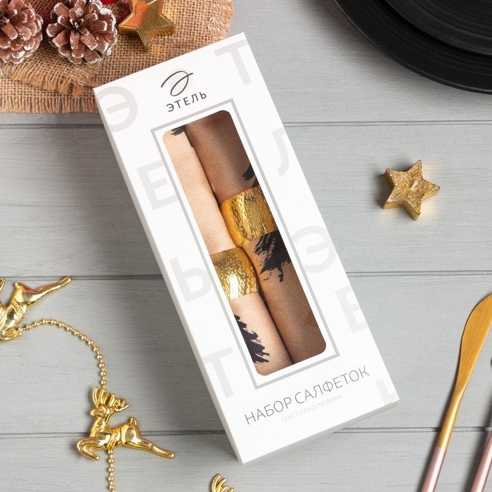Набор салфеток с декорат. кольцами «LOVE XMAS» 45×45 см — 2 шт, 100% хл, саржа 190гр/м2