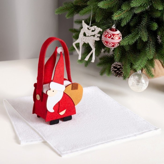 Полотенце в корзинке Экономь и Я «Дед Мороз» 30*60 см, цв. белый, 100%хл, 320 г/м2