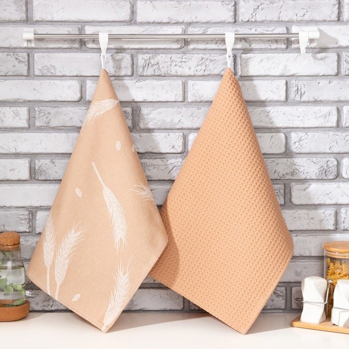 Набор полотенец «Этель» Колоски 40×60 см — 2 шт., цвет бежевый, 100% хлопок