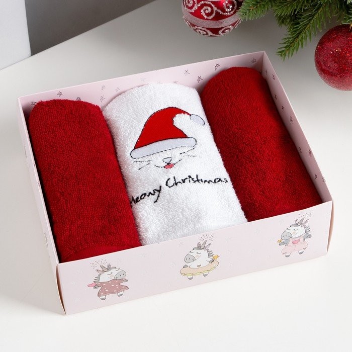 Набор полотенец Экономь и Я «Котик» 30*60 см-3шт, 100% хл, 320 г/м2