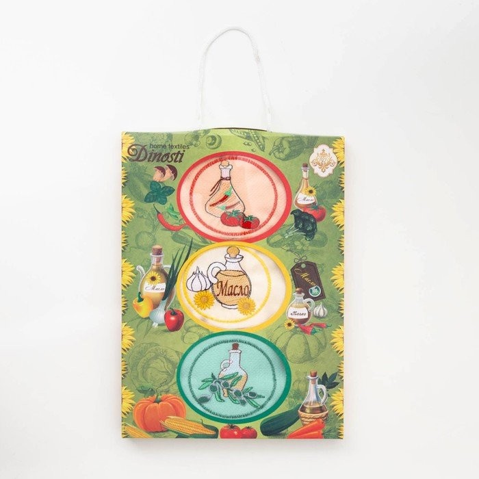 Набор кухонных полотенец в коробке 50*60 см-3 шт, Масло, вафля, хл