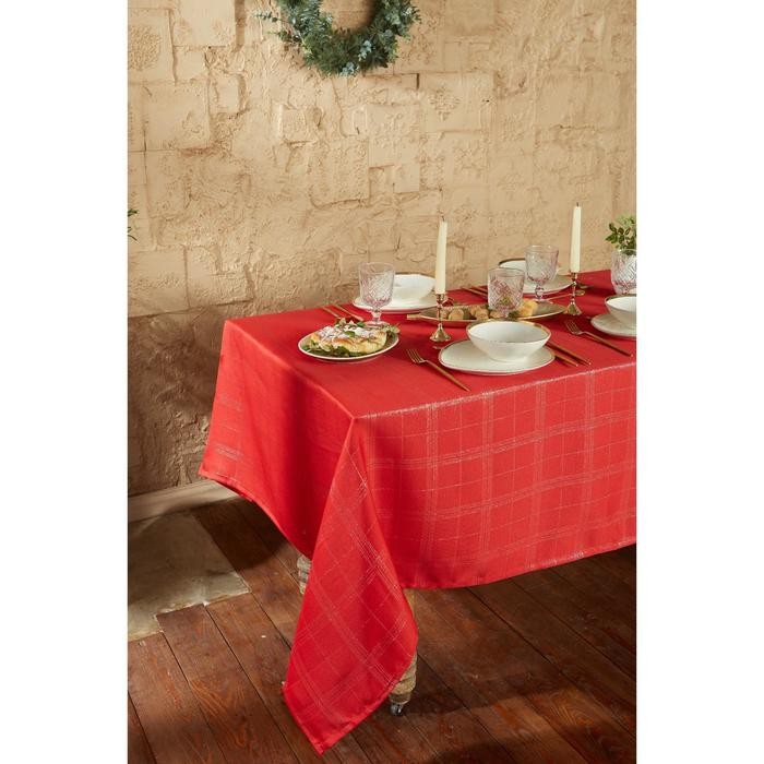 Скатерть Этель «Клетка» цв.серебро, 142*283 +/-3 см, 115 ±10 гр,100% п/э
