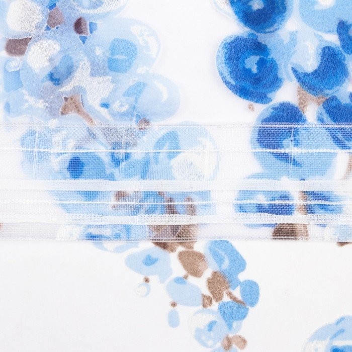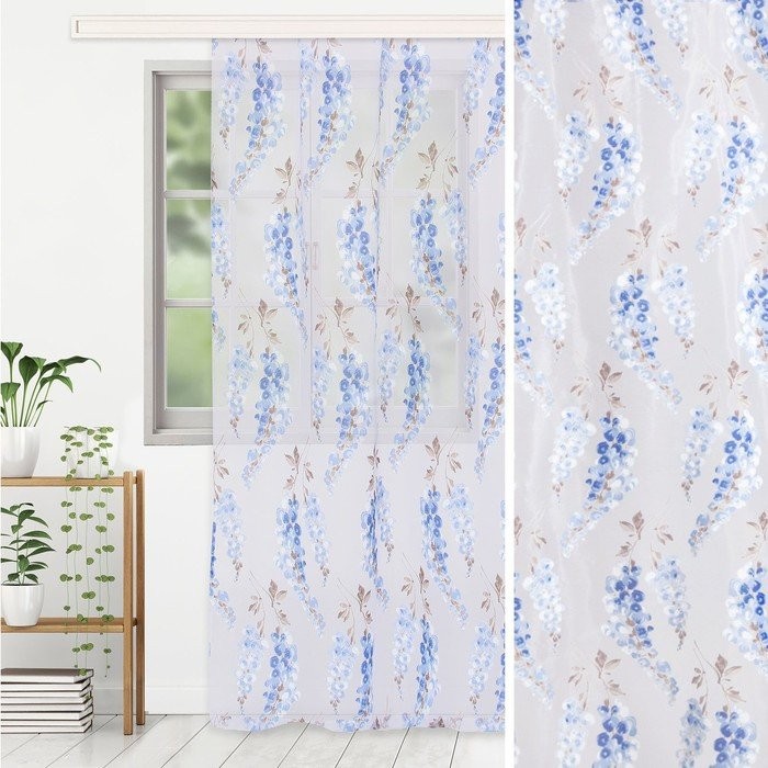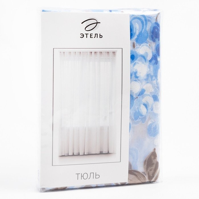 Тюль «Этель"Виноградная лоза (синий) б/ утяжелителя, ширина 140 см, высота 250 см