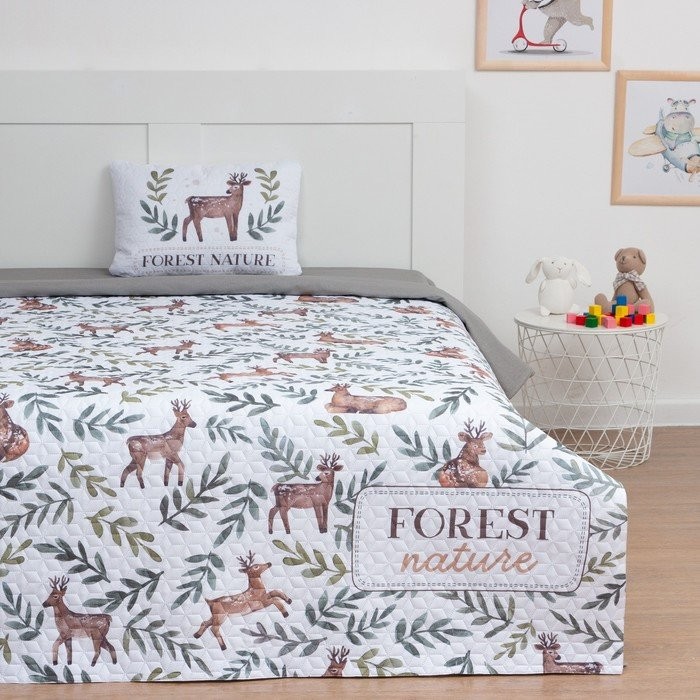 Покрывало детское и наволочка Этель 1,5 сп, «Лесные олени», 145×210 см, 40×60 см, микрофибра