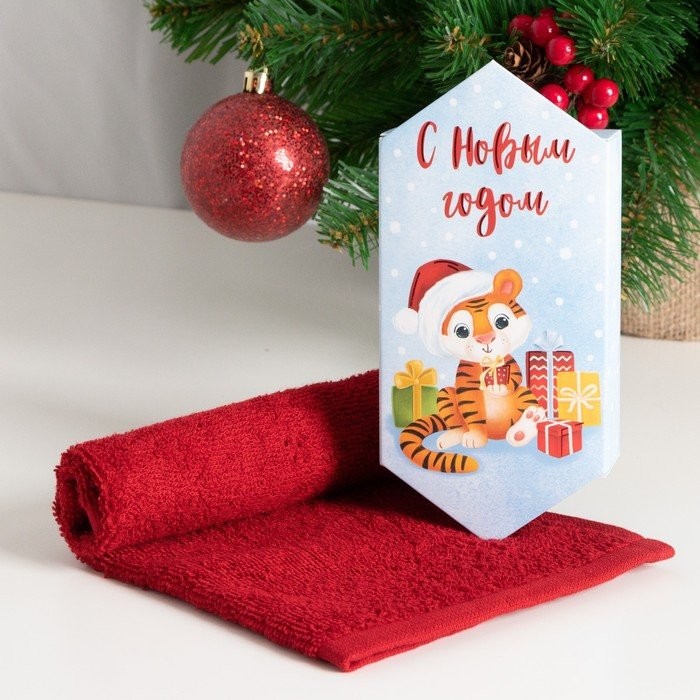 Новогоднее полотенце махровое Этель «С Новым годом» 30×30 см, 100 хл 340г/м2