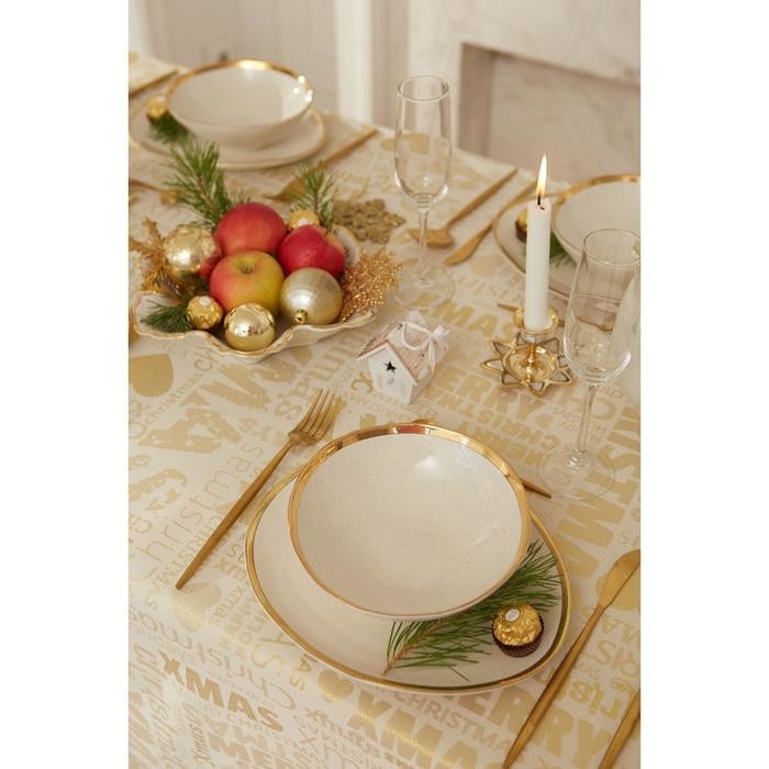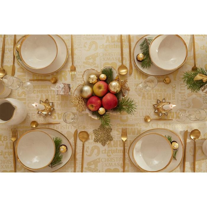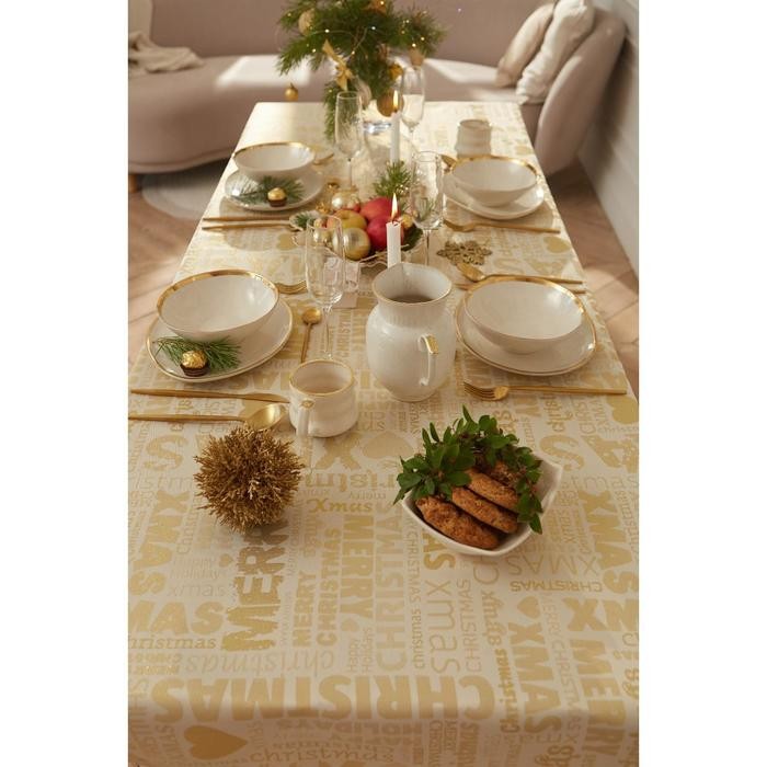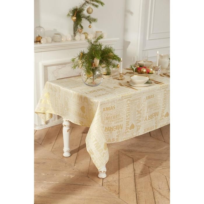 Скатерть Этель «Новый год: Merry xmas» цвет золотой, 142*180 +/-3 см, 115 ±10 гр, 100% п/э