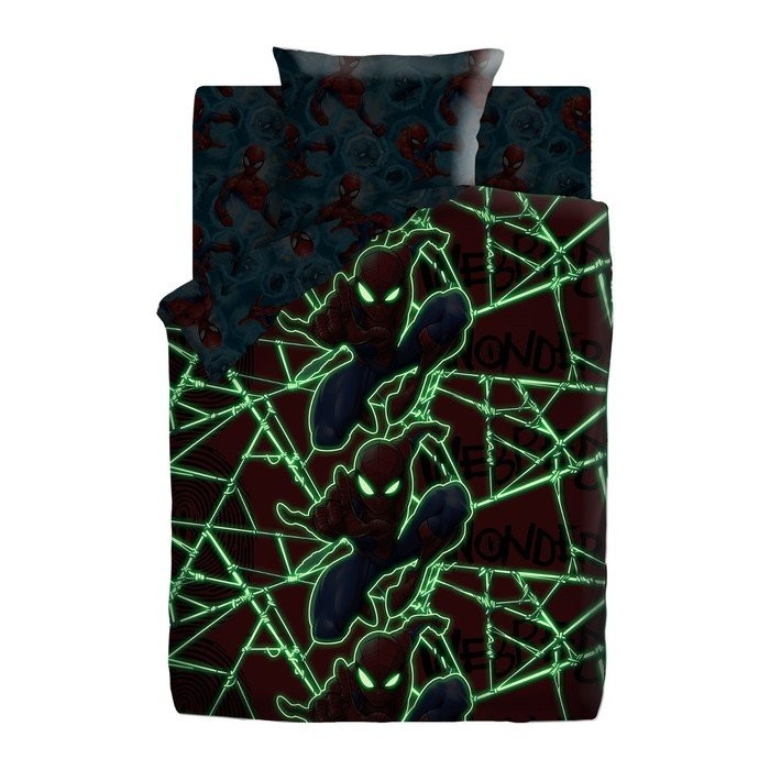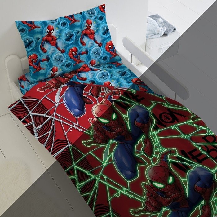 Постельное бельё 1.5сп Человек Паук Neon «Паутина» 143×215, 150×214, 70×70−1шт, поплин 105г/м хл100%