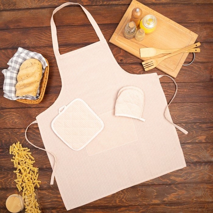 Кухонный набор «Полосы» фартук 60х70см, прихватка 20х20см, варежка 12х15см, цвет бежевый, 50%п/э, 50%хл