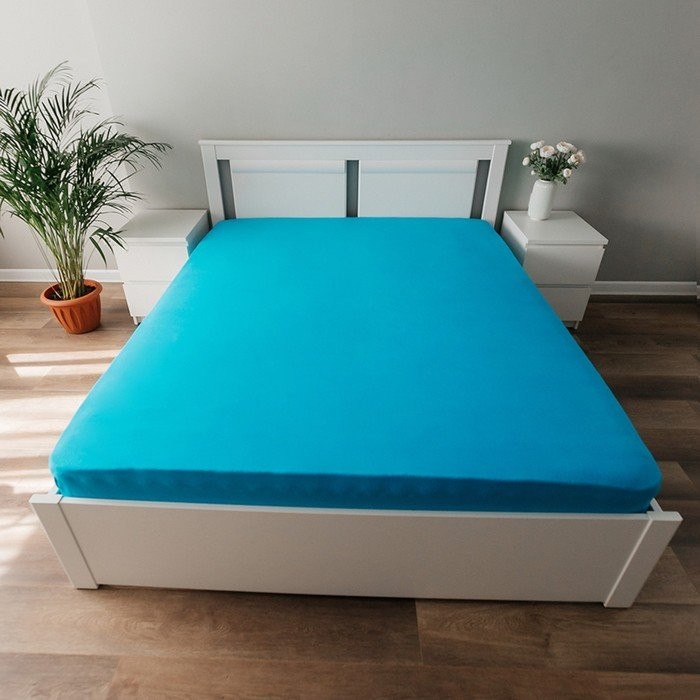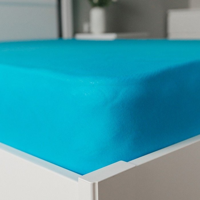 Трикотажная простынь на резинке 140х200х25см, синий кулирка, 120г/м хл100%
