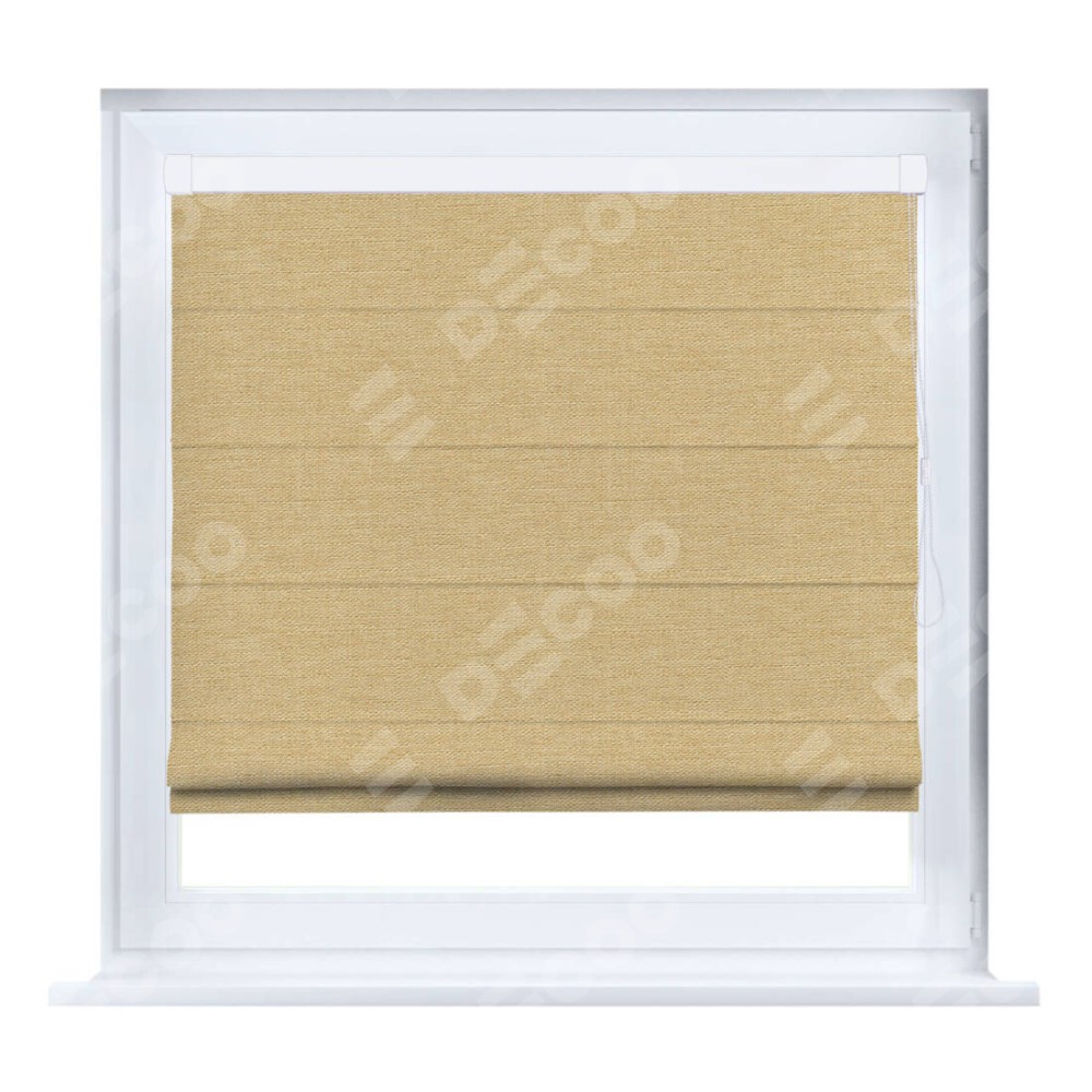 Римская штора производителя «Cortin», устанавливается на створку окна, пошита из ткани лён тёмно-бежевый, артикул 53433. Штора шьётся по индивидуальным размерам, для данного типа римской шторы возможная ширина от 35 до 150 см., высота до 250 см.