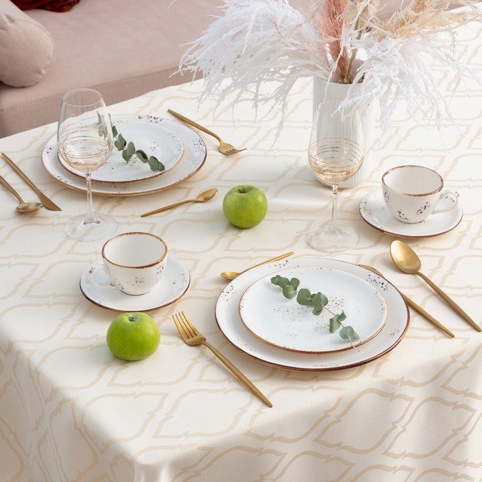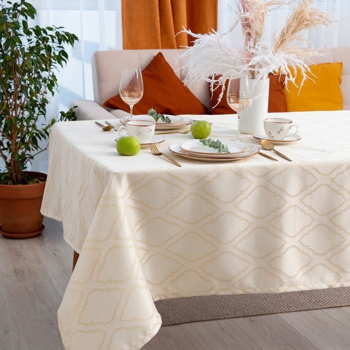 Скатерть Этель «Ажур» цв.бежевый, 142*180 +/-3 см, 115 ±10 гр,100% п/э