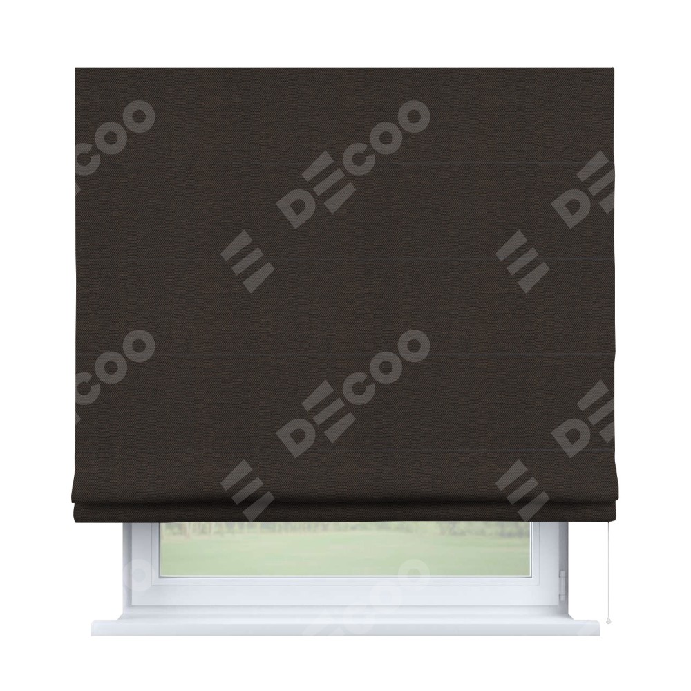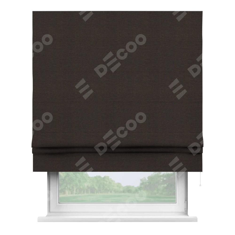 Римская штора производителя «Cortin», используется для проёма, пошита из ткани лён димаут венге, артикул ткани 85410. Имеет универсальный механизм и подходит для монтажа: на потолок, на стену и в нишу.